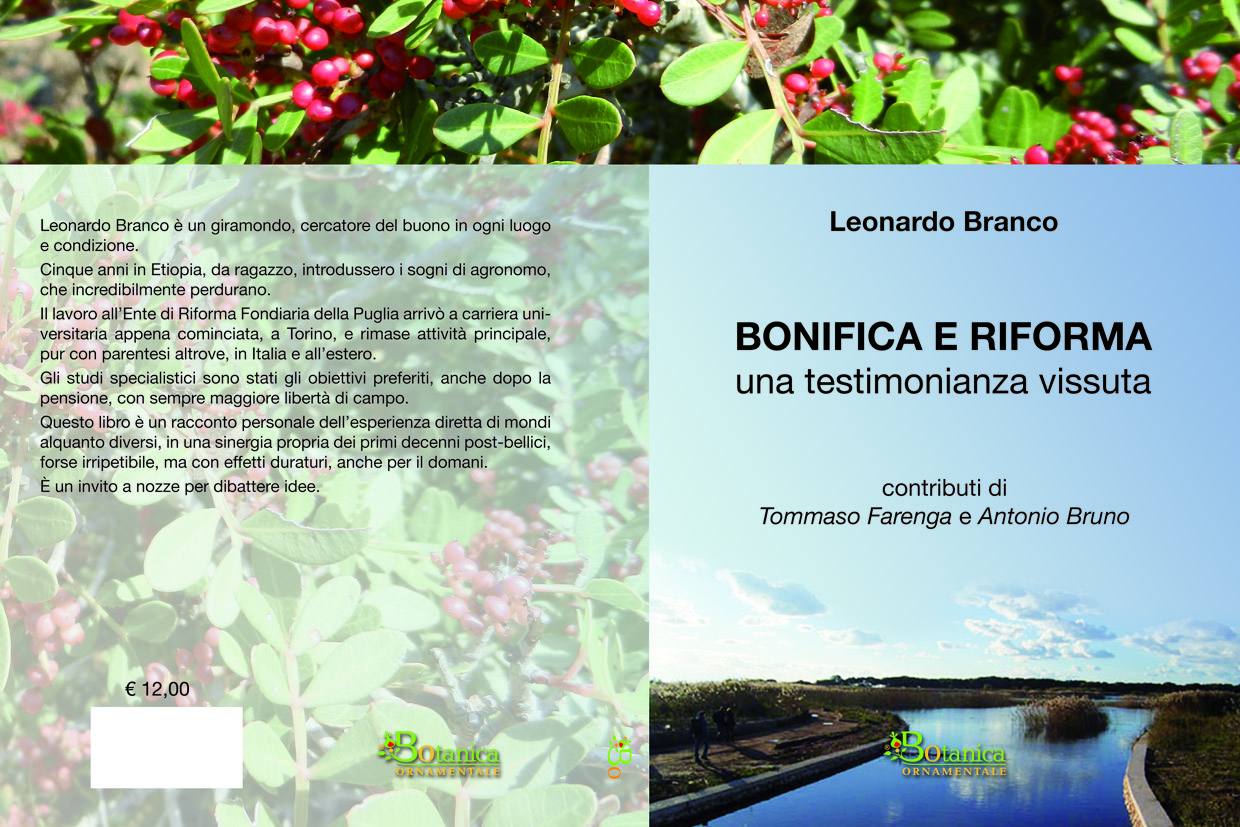 E’ stato presentato ad Otranto il libro di Leonardo Branco “Bonifica e Riforma una testimonianza vissuta” con contributi di Tommaso Farenga e Antonio Bruno, dipendente del Consorzio di bonifica Ugento Li Foggi (con sede ad Ugento, in provincia di Lecce). Il libro di Leonardo Branco, tecnico che ha diretto la riforma fondiaria con interventi, che hanno tracciato il futuro turistico salentino, è stato l’occasione per discutere della “naturalità” del passato, della povertà, della Bonifica e dello sviluppo turistico nella salvaguardia dei valori ambientali. Lo studio di Tommaso Farenga, contenuto nel volume, valuta la sostenibilità degli interventi della Riforma Fondiaria, ma è Antonio Bruno nel suo contributo “Considerazioni sulla Bonifica”, che fornisce la risposta, dando la prospettiva di governance del territorio attraverso i Consorzi di bonifica. L’autore descrive l'obbiettivo che gli enti di Bonifica stanno perseguendo per creare una coscienza ambientale responsabile attraverso la conoscenza del territorio per amarlo, tutelarlo, preservarlo e salvaguardarlo. Nel saggio vi è l'approfondimento delle tematiche legate al territorio, alle attività ed alle funzioni dei Consorzi di bonifica per scoprire il paesaggio salentino, disegnato dall’acqua per comprendere il ruolo fondamentale della gestione sostenibile della risorsa. Il territorio salentino è il risultato di un incessante lavoro di bonifica idraulica ed irrigua, che ha definito nel corso dei secoli un importante sistema economico, sociale ed ambientale. I Consorzi di bonifica possono rendere possibile la nascita di un “sistema di sistemi”, fonte di sostenibilità economica, di sviluppo locale e d’occupazione. I Consorzi hanno sviluppato un approccio “attento” all’uso, alla preservazione ed alla gestione della risorsa idrica per beneficiarne nel lungo periodo, aprendo il territorio al turismo e ai differenti linguaggi culturali, pur mantenendo le singole identità. Tale “sistema di sistemi” rappresenta la struttura innovativa per un’agricoltura sostenibile e la sicurezza alimentare che genera consapevolezza e stimola soluzioni di natura sociale, economia ed ambientale. Spetta alla politica, soprattutto in questo momento di criticità territoriale, mettere in pratica questa innovazione a partire dal “paradigma Salento”, che necessita di un progetto per definire il “nuovo paesaggio” dopo la calamità xylella ed il rischio di perdita della Foresta degli Ulivi.