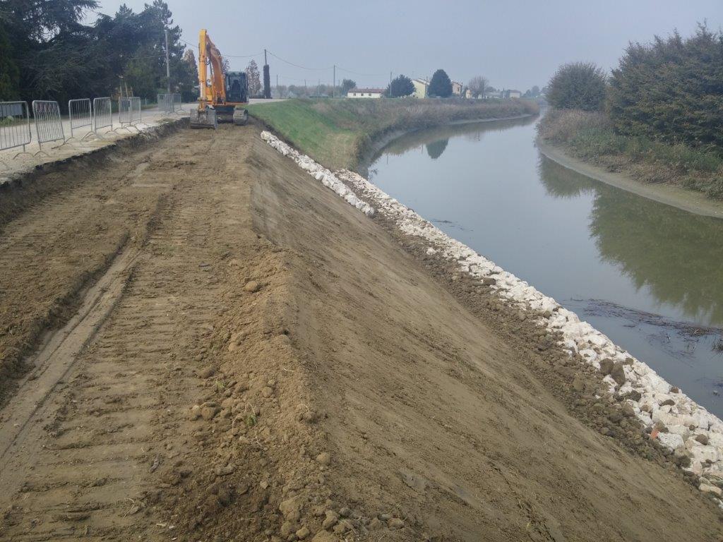L’intervento ha messo in atto un mix di tecniche tradizionali e innovative, provvedendo, tra l’altro, allo scavo e rimozione di 35 metri di sponda franata; 120.000 euro è l’importo totale dei lavori, di cui 70.000 finanziati dalla Regione Emilia-Romagna ei i rimanenti da ente consorziale e Comune di Bondeno.