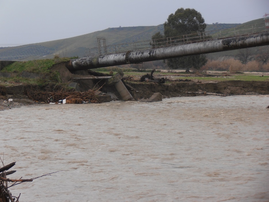 Dentro un quadro di danni subiti in tutto il comprensorio ed ancora in fase di calcolo, il Consorzio di bonifica Ionio Crotonese (con sede nel capoluogo di provincia) ha segnalato l’eccezionale scalzamento dell’argine idraulico in sinistra del fiume Tacina, in località Terrarossa su Roccabernarda. Si tratta del cedimento dell’ultima pila di sostegno del doppio tubo pensile in acciaio della condotta principale dell’impianto di irrigazione a servizio dei comprensori irrigui Fondo Valle Tacina ed Altopiano di Isola Capo Rizzuto.