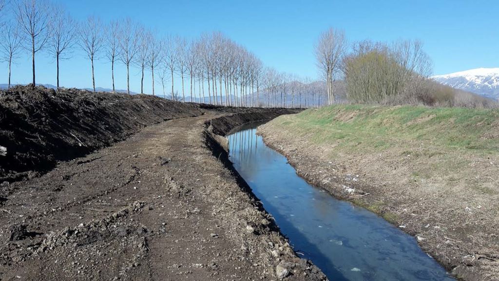 Il Consorzio di bonifica Ovest Bacino Liri-Garigliano (con sede ad Avezzano, in provincia de L’Aquila), per sopperire all’ingente richiesta irrigua in una zona priva di impianti consortili e di sufficienti fonti idriche naturali, ogni anno attiva la procedura di sbarramento dell’emissario dall’altopiano del Fucino e la contestuale immissione di acqua nei canali tramite emungimento da pozzi in falda.