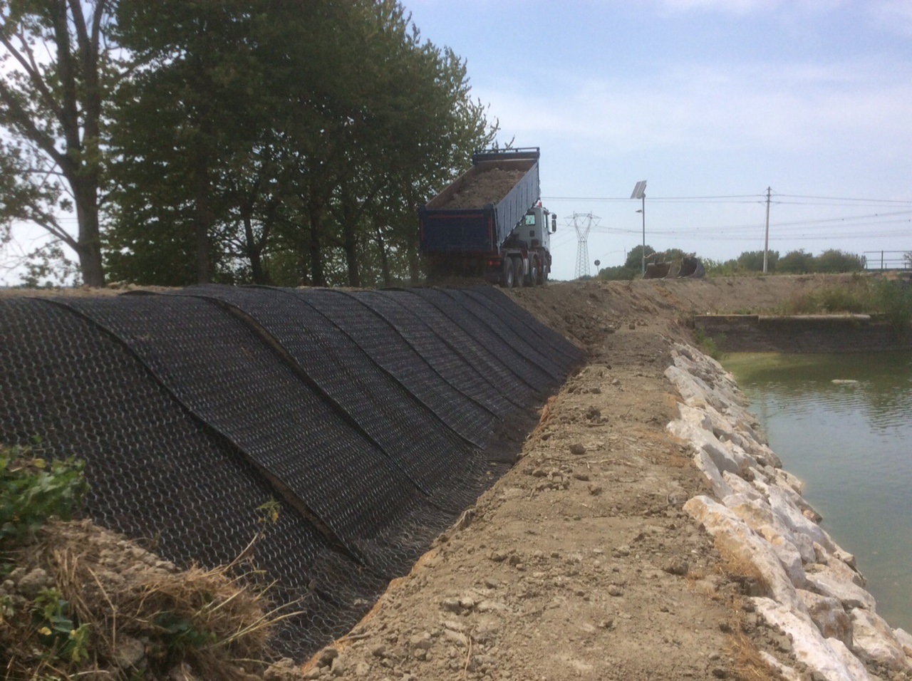 L’ antico canale consortile, interregionale, transita per i comuni di Quistello, Quingentole, Pieve di Coriano, Revere, Carbonara e Sermide, trasportando acque provenienti da comuni reggiani e mantovani. Da tempo, l’ente consortile teneva sotto controllo la presenza di una preoccupante perforazione nell’argine; c’era un serio rischio di allagamento dei terreni limitrofi. Approfittando di lavori in corso a Moglia di Sermide, dove si sta realizzando la nuova controchiavica, ma anche del fatto che il tratto terminale del canale è regimentato a quote contenute, l’ente consorziale ha deciso di intervenire per risolvere la situazione; i lavori sono durati circa tre settimane, contemplando anche la stesura di 3 strati di teli di diversa tessitura, con lo scopo di impedire la proliferazione di tane di animali (soprattutto, nutrie e gamberi).