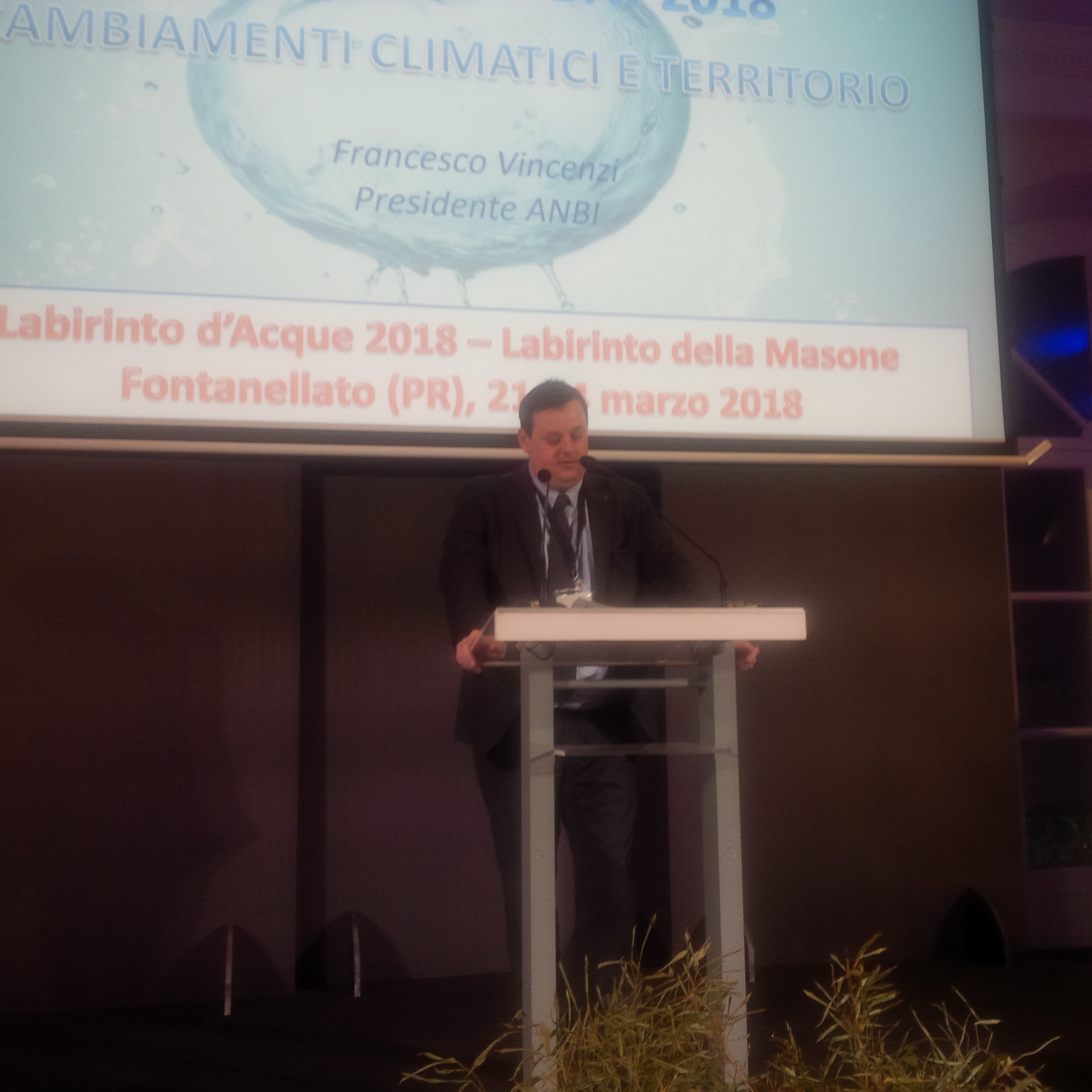 “Di fronte ai cambiamenti climatici, dobbiamo vincere la sfida delle paure e assumerci le nuove responsabilità ad ogni livello decisionale.” A ribadirlo con forza è stato Francesco Vincenzi, Presidente ANBI, intervenuto a “Labirinto d’Acque”, prestigioso meeting internazionale che per 4 giorni mette a confronto esperti, scienziati, rappresentati istituzionali e testimonial a Fontanellato, in provincia di Parma.