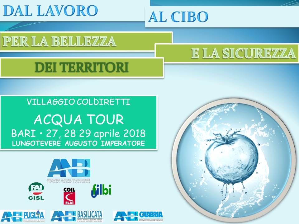 Si riavvia la macchina organizzativa del Villaggio degli Agricoltori Coldiretti e con essa anche l’Acqua Tour che, sabato 28 Aprile p.v., farà tappa sotto il “tenda workshop” allestito a Bari, sul Lungotevere Augusto Imperatore.