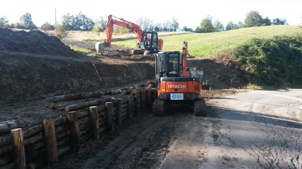 Gli interventi realizzati sono stati 2: una rete drenante di circa duecentocinquanta metri metri in grado di smaltire le acque in modo sicuro e la realizzazione di una palizzata doppia in legname per stabilizzare la scarpata a monte della strada.
