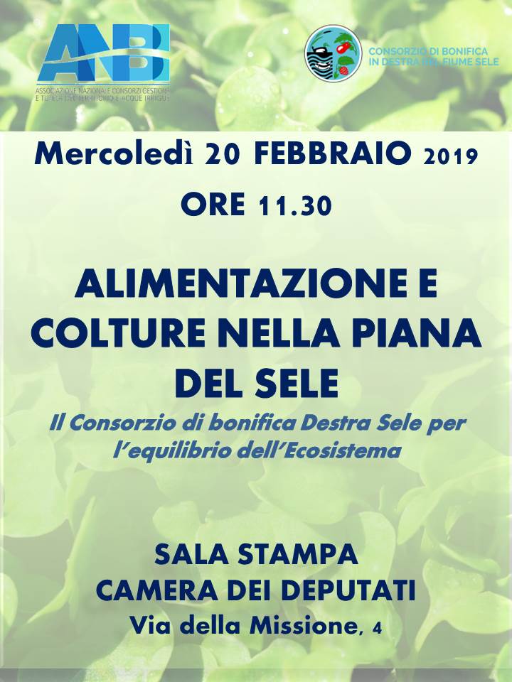 Storia, realtà e prospettive dell’economia di un territorio a servizio dell’agricoltura di qualità: è questo l’obbiettivo editoriale della trilogia “Alimentazione e colture nella Piana del Sele. Il Consorzio di bonifica Destra Sele per l’equilibrio dell’Ecosistema”, che sarà presentata mercoledì 20 Febbraio p.v. alle ore 11.30 nella Sala Stampa della Camera dei Deputati, a Roma. Saranno presenti: Filippo Gallinella, Presidente Commissione Agricoltura Camera Deputati; Francesco Vincenzi, Presidente ANBI; Massimo Gargano, Direttore Generale ANBI; gli autori, Vito Busillo, imprenditore agricolo e Presidente Consorzio di bonifica Destra Sele (con sede a Salerno) e Belinda Villanova, dottore di ricerca in storia economica. Nel corso dell’incontro saranno forniti i più recenti dati sull’agricoltura nel salernitano, area leader per le produzioni della “quarta gamma” ed un focus particolare sarà dedicato alla produzione di rucola, simbolo dell’agricoltura locale.