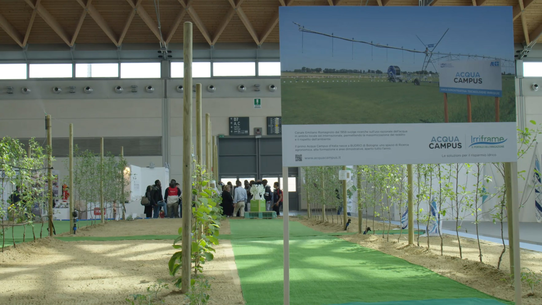 L’innovazione nell’irrigazione in un campo dimostrativo sarà protagonista a Macfrut, la fiera internazionale dell’ortofrutta (8-10 maggio p.v.) a Rimini: è la rinnovata proposta di “AcquaCampus”, il progetto in partnership tra ANBI, Consorzio di 2° grado C.E.R. - Canale Emiliano Romagnolo (con sede a Bologna)e Cesena Fiera. In questa edizione, l’area dimostrativa di Budrio viene riprodotta in scala all’interno del padiglione e presenta i modelli di sperimentazione in uno spazio di oltre seicentoquaranta metri quadri. Quest’anno, oltre al risparmio d’acqua per utilizzo agricolo, si approfondiranno temi innovativi come fertirrigazione, climatizzazione delle colture, sensoristica, utilizzo dei big data.