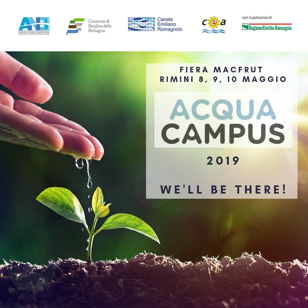 L’innovazione nell’irrigazione in un campo dimostrativo sarà protagonista a Macfrut, salone internazionale dell’ortofrutta (8-10 Maggio p.v.) in Fiera a Rimini. E’ la rinnovata proposta di AcquaCampus, il progetto in partnership tra i Consorzi di bonifica associati ad ANBI, i laboratori tecnico-scientifici di ricerca del Consorzio di 2° grado Canale Emiliano Romagnolo – C.E.R. (con sede a Bologna) e Cesena Fiera: uno spazio ricco di novità in grado di rispondere alle esigenze più disparate, riguardanti il risparmio di risorse idriche in agricoltura e l’ottimizzazione delle tecnologie più avanzate in campo.