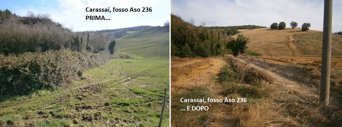 Una grande quantità di materiale vegetativo e terroso per circa duecento metri: questo il problema emerso dal sopralluogo effettuato dal Consorzio di bonifica Marche (con sede a Pesaro) a Carassai, sul fosso Aso 236.