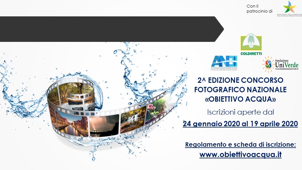 Coldiretti, ANBI e Fondazione UniVerde organizzano la 2° edizione del Concorso Fotografico Nazionale “Obiettivo Acqua”, con il patrocinio del Ministero dell’Ambiente e della Tutela del Territorio e del Mare; alla prima edizione hanno partecipato oltre quattrocento opere.