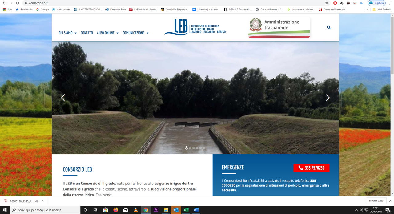 Il Consorzio di bonifica di 2° grado L.E.B. - Lessinio Euganeo Berico (sede a Cologna Veneta, in provincia di Verona) ha pubblicato il nuovo sito istituzionale, progettato con l’obbiettivo di rendere la consultazione più immediata ed accessibile.