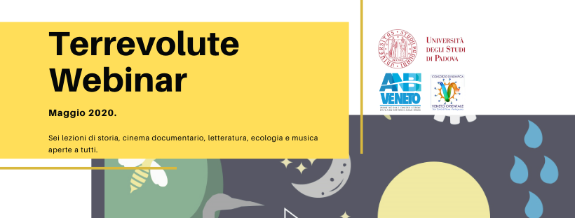 Terrevolute, Festival della Bonifica promosso da ANBI Veneto e dall’Università di Padova, a causa dell’emergenza Covid-19, ha dovuto abbandonare la piazza e le sale di San Donà di Piave, ma è riuscito a reinventarsi: dalla collaborazione tra il Dipartimento di Scienze Storiche, Geografiche e dell’Antichità dell’Ateneo patavino, Consorzio di bonifica Veneto Orientale (con sede a San Donà di Piave, in provincia di Venezia), Teatro Boxer e Teatro delle Arance è nato, infatti, un ciclo di “webinar” che, sulla piattaforma web Zoom, fino al 29 Maggio p.v., proseguirà la riflessione sui temi propri della manifestazione, giunta alla terza edizione: ambiente, storia, letteratura, musica e cinema documentario, sotto il comune denominatore offerto dalla Bonifica e dal rapporto tra uomo, territori di pianura, acqua. Si dà così continuità al percorso, che porterà, nel 2022, all’evento celebrativo dei 100 anni del Congresso Regionale della Bonifica, che nel 1922, proprio nella città sandonatese, pose le basi per la moderna Bonifica.