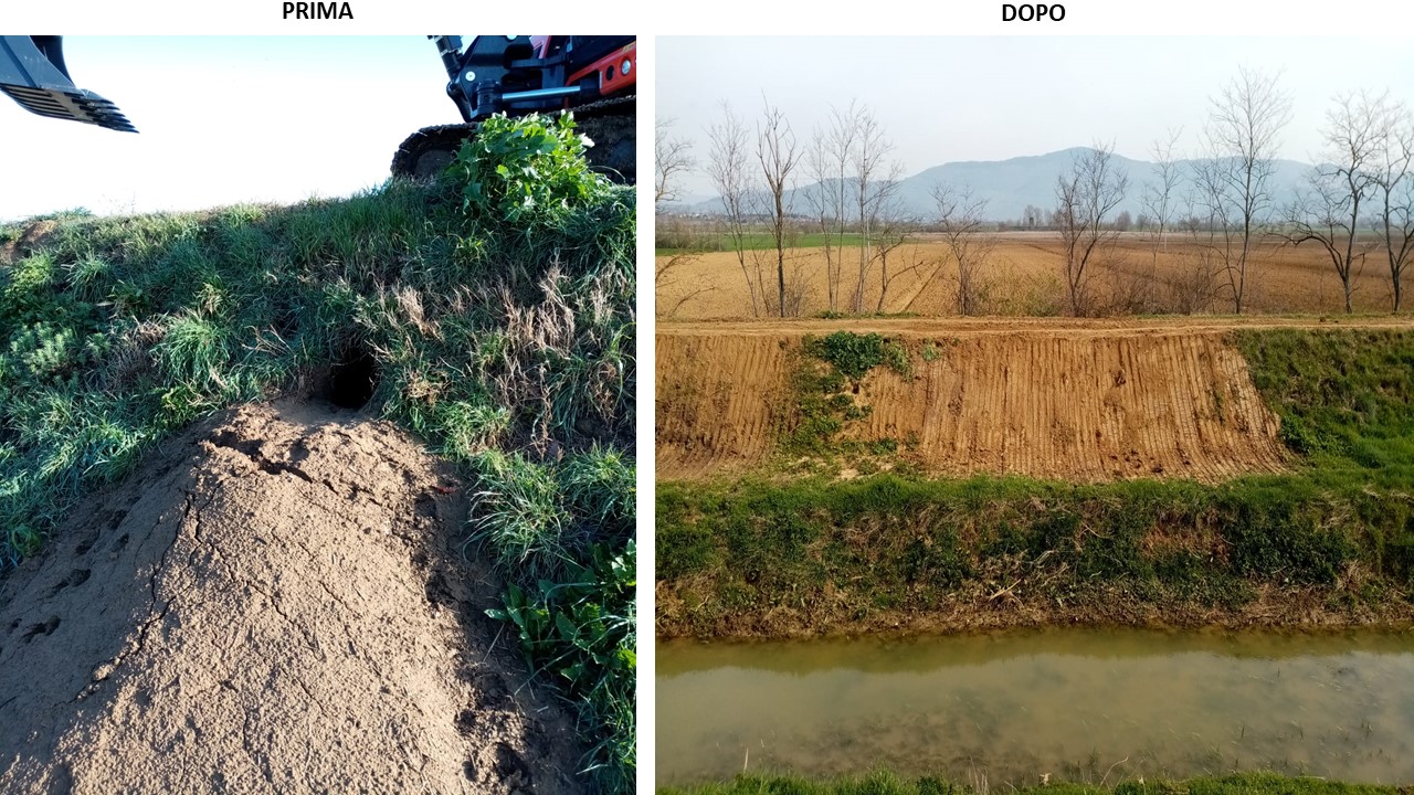 I fori d’ingresso lasciavano intuire l’impressionante sviluppo sotterraneo dei cunicoli; da qui, l’urgenza di effettuare l’intervento programmato per il 2020 e realizzato proprio durante l’emergenza sanitaria: le squadre con i mezzi d’opera dell’ente hanno individuato, censito e sistemato decine di cavità. Il fenomeno è noto: il terreno più friabile, la disponibilità di cibo ed altri fattori ambientali rendono l’area circostante il torrente Mucchia particolarmente appetibile e gettonata dalle popolazioni di nutrie che, anche dopo lo “sfratto”, tendono a tornare.