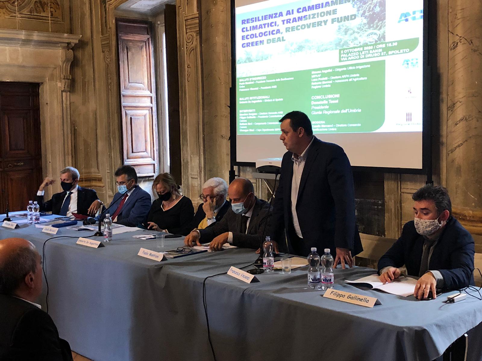 Grande partecipazione ed interesse per il convegno “Resilienza ai cambiamenti climatici, Transizione Ecologica, Recovery Fund, Green Deal” tenutosi a Spoleto, nella storica sede del Consorzio Bonificazione Umbra, organizzatore dell’evento insieme ad ANBI Umbria.; presenti anche il Presidente, Francesco Vincenzi ed il Direttore Generale ANBI, Massimo Gargano.