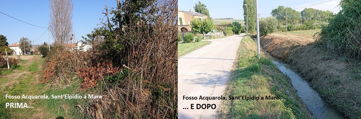 L’attività di manutenzione del Consorzio di bonifica Marche (con sede a Pesaro) si concretizza anche attraverso la pulizia dei corsi d’acqua come dimostra il lavoro completato a Sant’Elpidio a Mare, in località Luce: qui gli operai sono intervenuti sul fosso Acquarola, oggetto di lavori già negli anni passati e dove vegetazione erbacea ed interrimenti avevano ridotto, in parte, la sezione di deflusso delle acque.