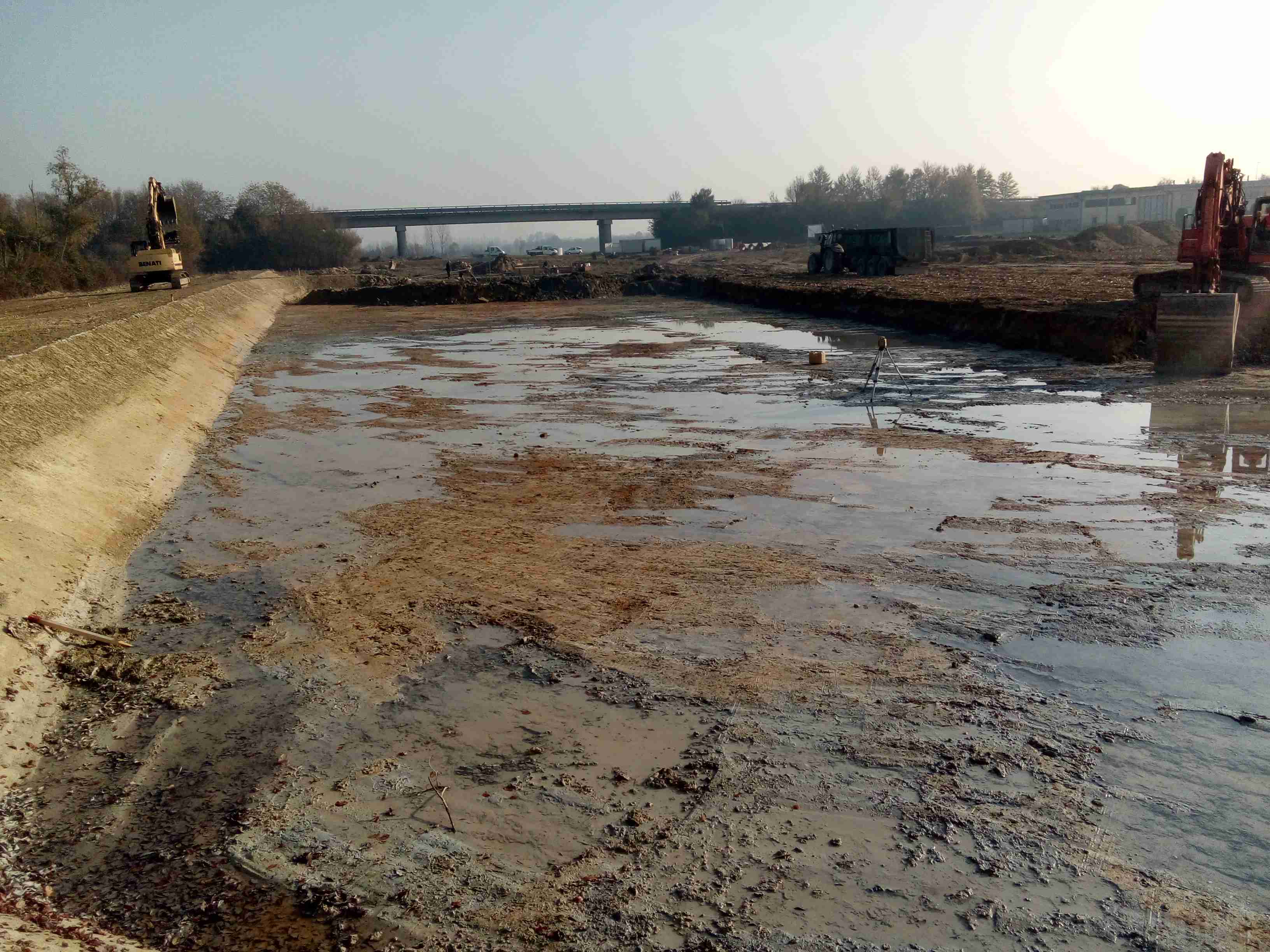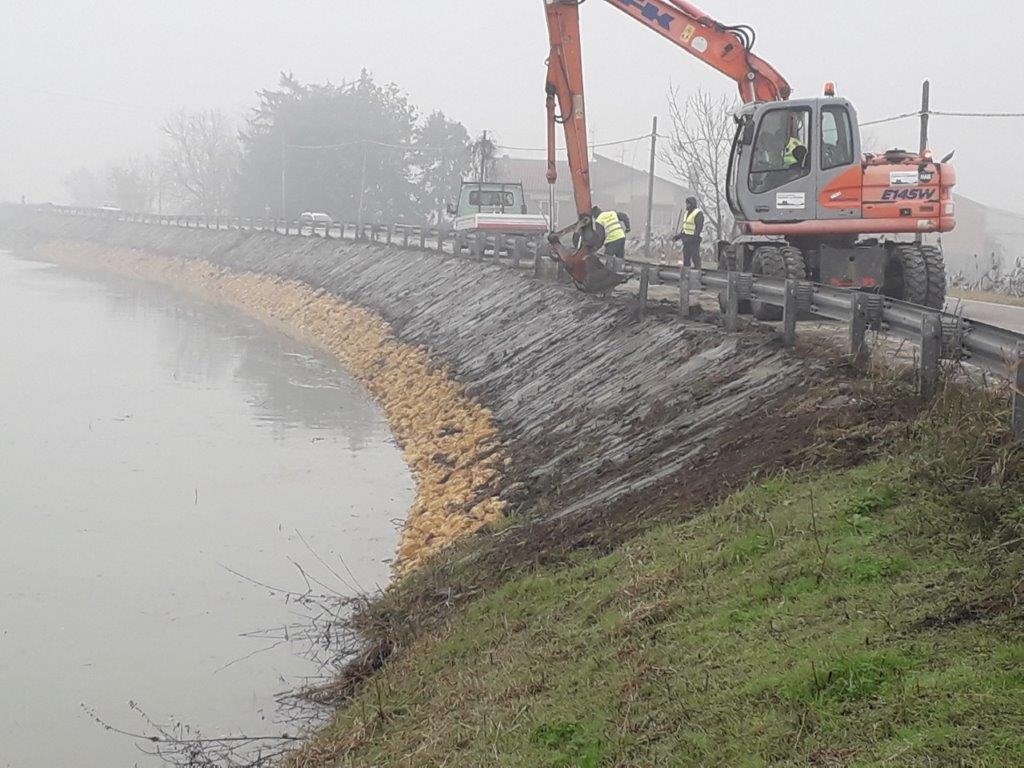Per risolvere il problema è stato necessario anche procedere all'espurgo del materiale litoide, così da ripristinare la sezione ordinaria del canale, e il materiale è stato poi utilizzato per rinforzare gli argini.