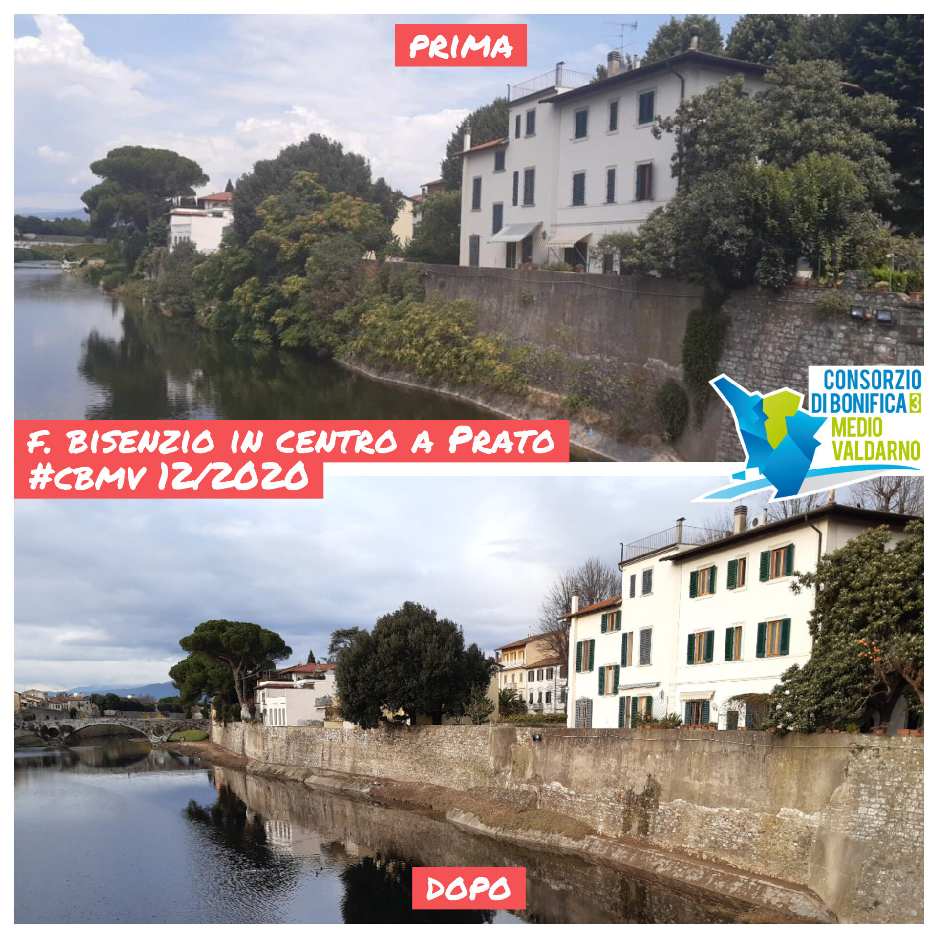 Da tempo sotto osservazione, con sopralluoghi congiunti da parte dei tecnici del Consorzio di bonifica Medio Valdarno (con sede a Firenze) e del Genio Civile Valdarno Centrale, grazie anche alle collaborative segnalazioni di cittadini, i paramenti murari del fiume Bisenzio nel tratto, che attraversa il centro della città di Prato, sono stati ripuliti da tutta la vegetazione infestante.