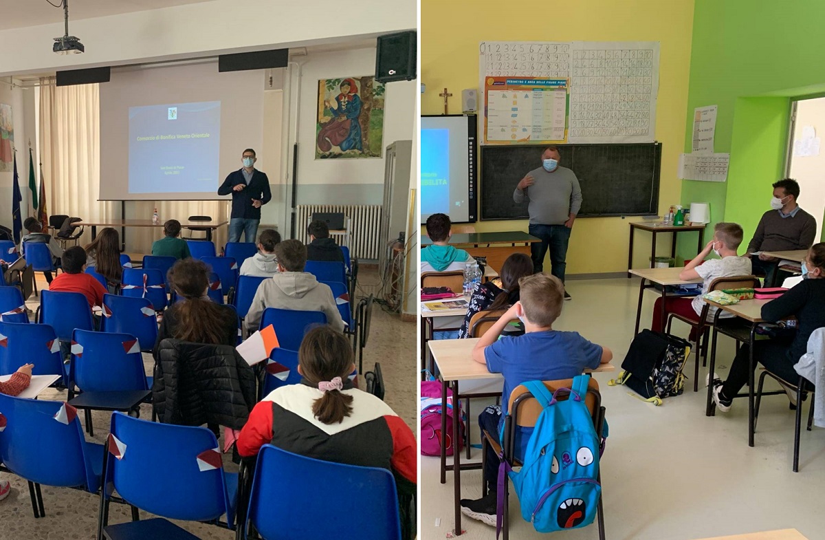 I primi enti consortili ad aver incontrato gli studenti in questa ripartenza sono stati il Consorzio L.E.B.- Lessinio Euganeo Berico (con sede a Cologna Veneta, in provincia di Verona) ed il Consorzio di bonifica Veneto Orientale (con sede a San Donà di Piave, in provincia di Venezia). Obbiettivo del progetto, che quest’anno per ovvi motivi ha dovuto fare a meno delle visite guidate e concentrarsi sugli incontri in classe e sui laboratori multidisciplinari, è quello di raccontare a giovani e giovanissimi le peculiarità idrogeologiche dei rispettivi territori, con attenzione particolare alla gestione delle acque.