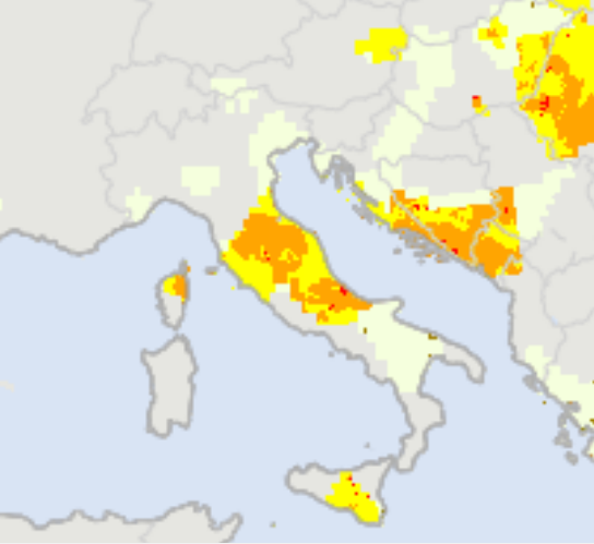 Secondo i dati dell’European Drought Observatory (E.D.O.), sono le province di Pescara e Chieti, quelle maggiormente in sofferenza idrica al termine di un Agosto meteorologicamente “estremo” sull’Italia (dalle temperature tropicali alle disastrose grandinate): oltre che in Abruzzo, grave siccità si registra in Molise e Marche, ma c’è forte crisi idrica anche nel Sud del Piemonte fino ad arrivare al crescente rischio desertificazione in alcune zone della Sicilia ed al preoccupante, progressivo inaridimento delle coste di Romagna.