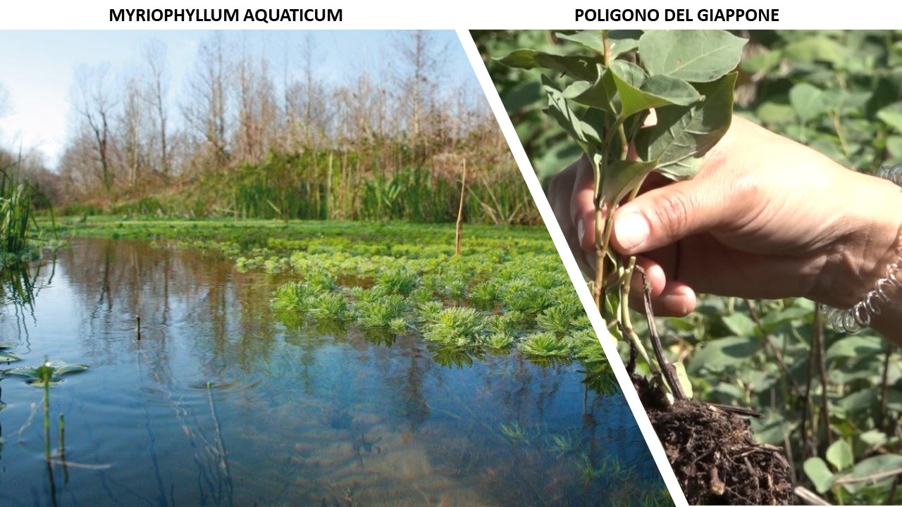 Il Myriophyllum Aquaticum, popolarmente conosciuto come “Millefoglio Americano”, è inserito nella lista di rilevanza dell’Unione Europea da Luglio 2016 ed è presente negli ambienti naturali di 9 regioni italiane: Lombardia, Veneto, Friuli Venezia Giulia, Emilia Romagna, Toscana, Marche, Lazio, Campania e Abruzzo, mentre in Piemonte la specie è stata oggetto di eradicazione e dal 2017 non si hanno nuove segnalazioni. Le eradicazioni meccaniche si dimostrano uno strumento eï¬?cace, ma comportano anche la rimozione delle specie autoctone presenti, per cui si privilegia la rimozione manuale delle piante invasive.