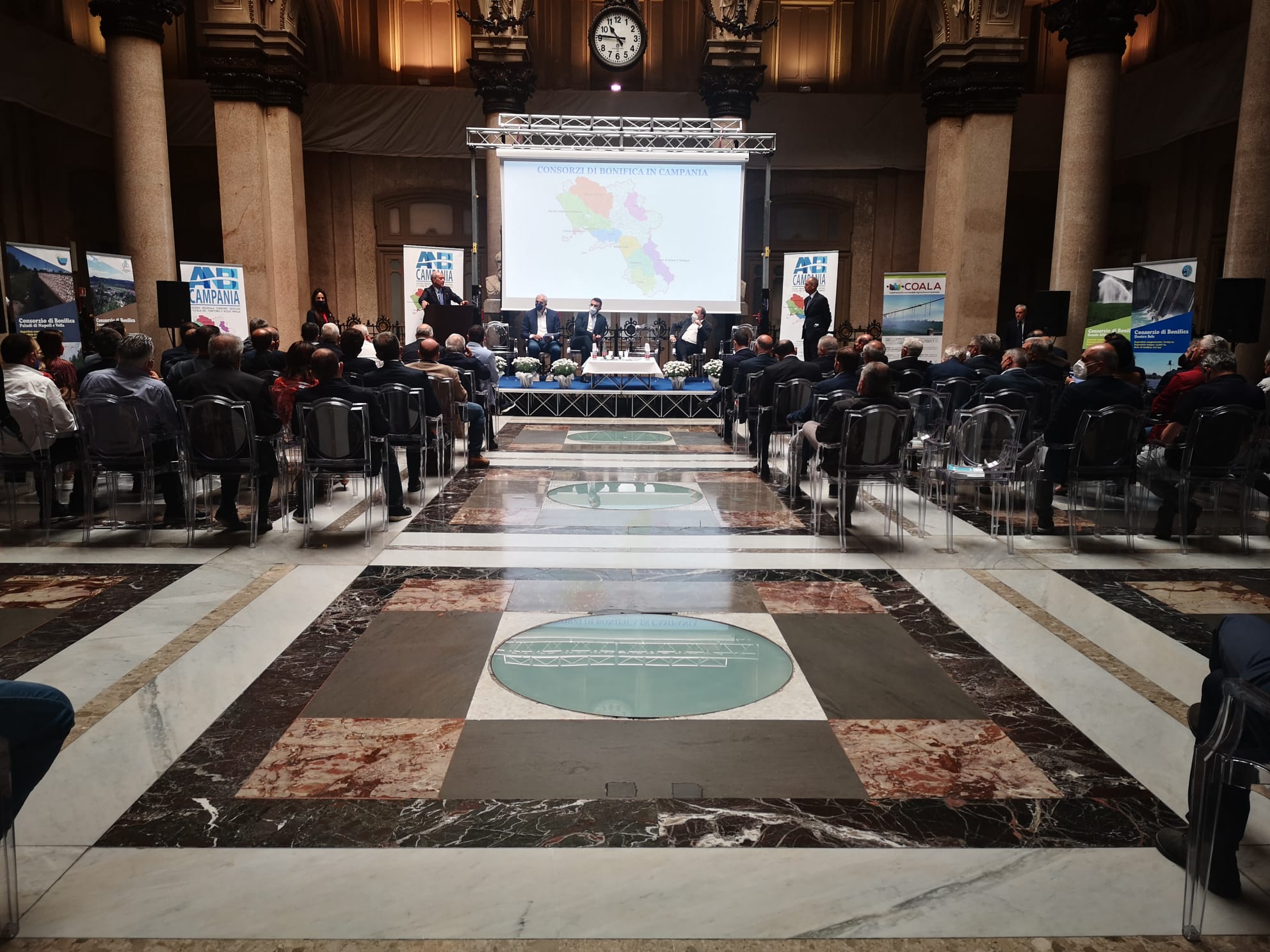 Presenti il Presidente, Francesco Vincenzi ed il Direttore Generale ANBI, Massimo Gargano, il Presidente ANBI Campania, Vito Busillo, ha ricordato i numeri regionali, dove i territori interessati dalla Bonifica coprono oltre il 60% della superficie e ben 100.000 ettari sono irrigati.