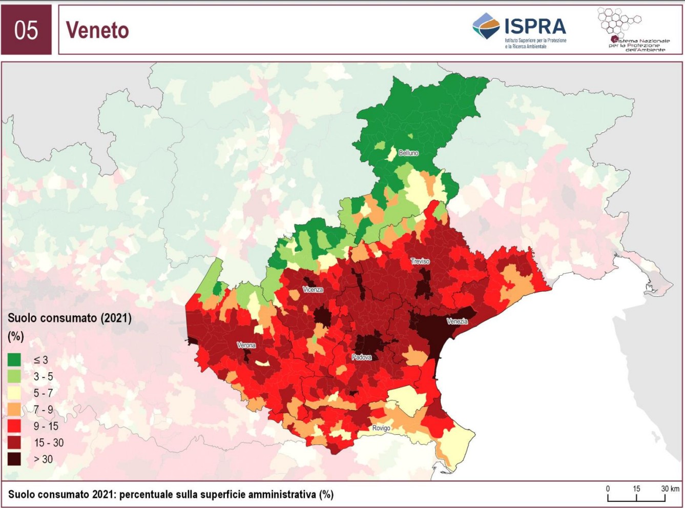 Lo ha affermato ANBI Veneto, nel commentare il rapporto Ispra sul consumo del suolo e nel quale il Veneto è la seconda regione, dopo la Lombardia, per aumento di superficie cementificata: +684 ettari impermeabilizzati nel 2021 rispetto al 2020: un aumento del 11,90%.