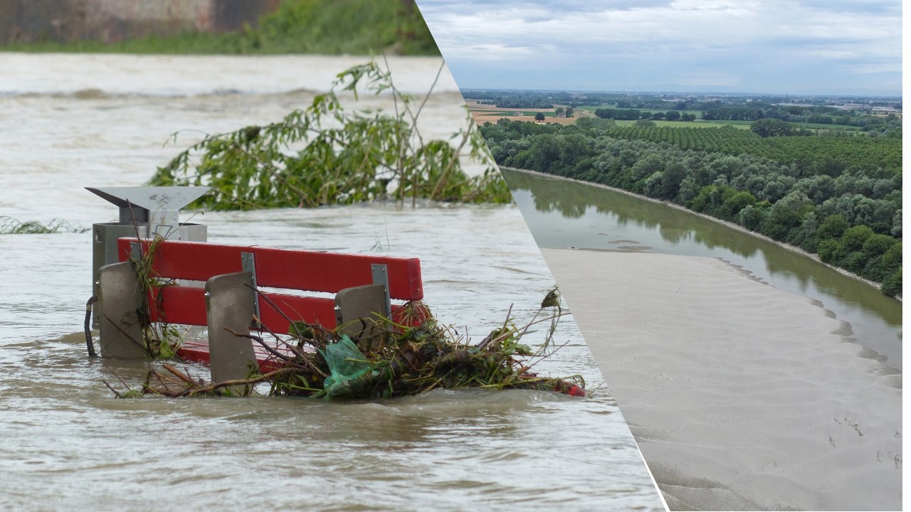 La percezione dell’alto pericolo idraulico si ha evidente, osservando la condizione del Piemonte dove, ad una timida ripresa della Stura di Lanzo (risalita a 9,5 metri cubi al secondo, ma l’anno scorso era mc/s 18 e nel 2020 era mc/s 23!) si contrappone la persistente “asciutta” di corsi d’acqua, temuti per il regime torrentizio ad alto rischio come la Bormida e l’Orba; nella confinante Valle d’Aosta, dove le precipitazioni settembrine sono state inferiori alla media, si sono dimezzate le portate della Dora Baltea.