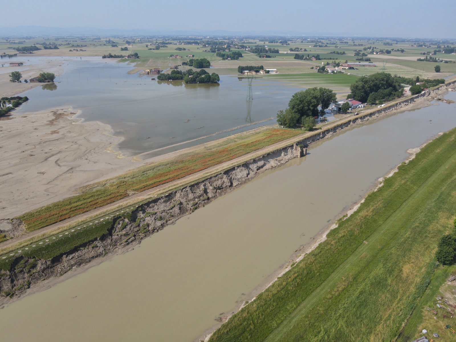 Accade così dai giorni dell’alluvione di Maggio, quando il cedimento dell’argine provocò l’inondazione di circa duemila ettari, poi parzialmente ridotta, allora come adesso, dall’azione del reticolo idraulico di bonifica, devastato comunque dalla grande massa d’acqua e fango. Non solo: a monte della rotta ci sono oltre tre chilometri d’argine in precaria sicurezza con evidente pericolo per alcuni centri abitati ed è proprio il timore per i rischi collegati ad un possibile aumento della pressione spondale a sconsigliare la chiusura dell’argine, senza procedere ai necessari rinforzi a monte, per i quali la Regione Emilia Romagna non dispone da sola delle necessarie risorse (si parla di centinaia di milioni di euro).