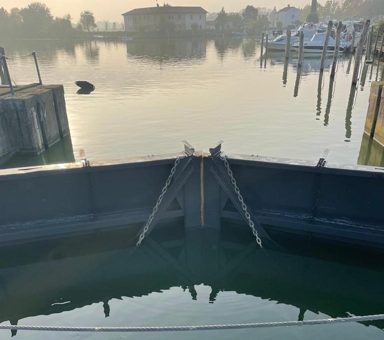 I lavori sono consistiti nella riparazione della struttura metallica, nel cambio delle battute in legno e nella tinteggiatura delle porte; per il sollevamento e l'installazione delle strutture è stata impiegata una potente gru da 420 tonnellate. Ripristinata la sicurezza idraulica del manufatto, la seconda tranche dei lavori riguarderà la costruzione delle nuove paratoie dello sbarramento e l'implementazione dell’automazione e del telecontrollo.