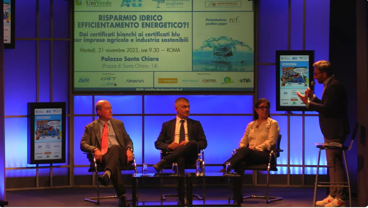 Le transizioni energetica ed ecologica sono incomplete senza una transizione sostenibile anche nella gestione delle risorse idriche; occorre prevedere norme, misure ed eventuali incentivi per favorire l’adozione di sistemi di efficientamento idrico innovativi e di precisione da parte di imprese agricole e industrie: è questa la proposta lanciata al convegno “Risparmio idrico è efficientamento energetico?! Dai certificati bianchi ai certificati blu per imprese agricole e industria sostenibili”, promosso da Fondazione UniVerde ed ANBI, svoltosi a Roma con la main partnership di Acquedotto Pugliese.