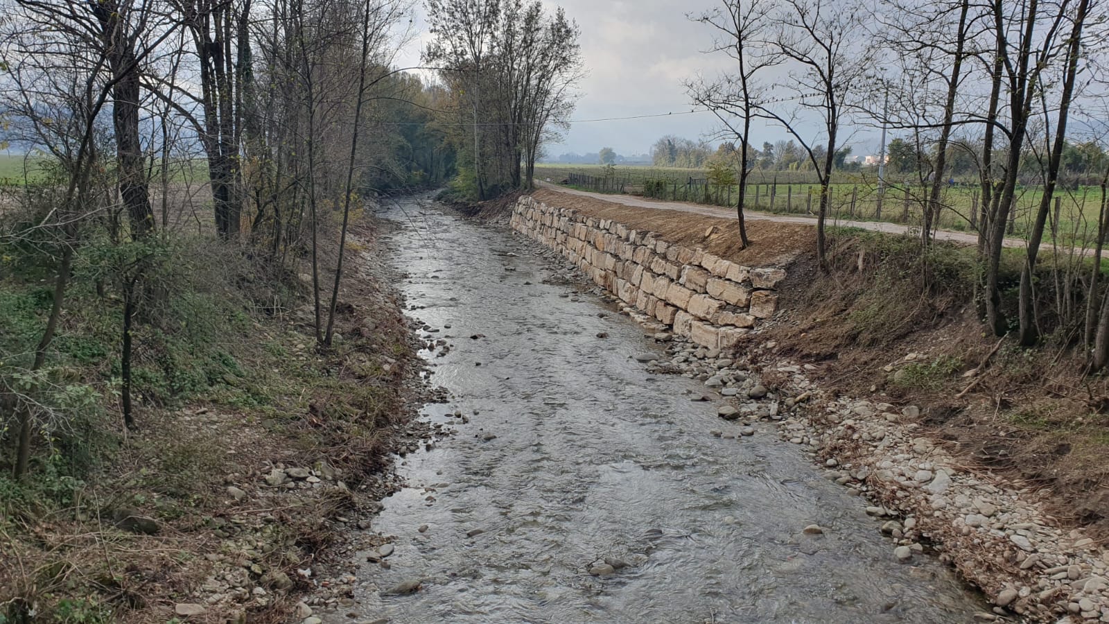 È stata così ripristinata una gabbionata in 5 ordini, completata con fondazione in massi. Inoltre, grazie alla sinergia Consorzio/Comune, è stata risistemata anche la vicina infrastruttura ciclopedonale, con un sostanziale risparmio di spesa: è stata stipulata una convenzione di 50.000 euro per costruire (con intero finanziamento comunale) una scogliera e ripristinare il percorso ciclopedonale.