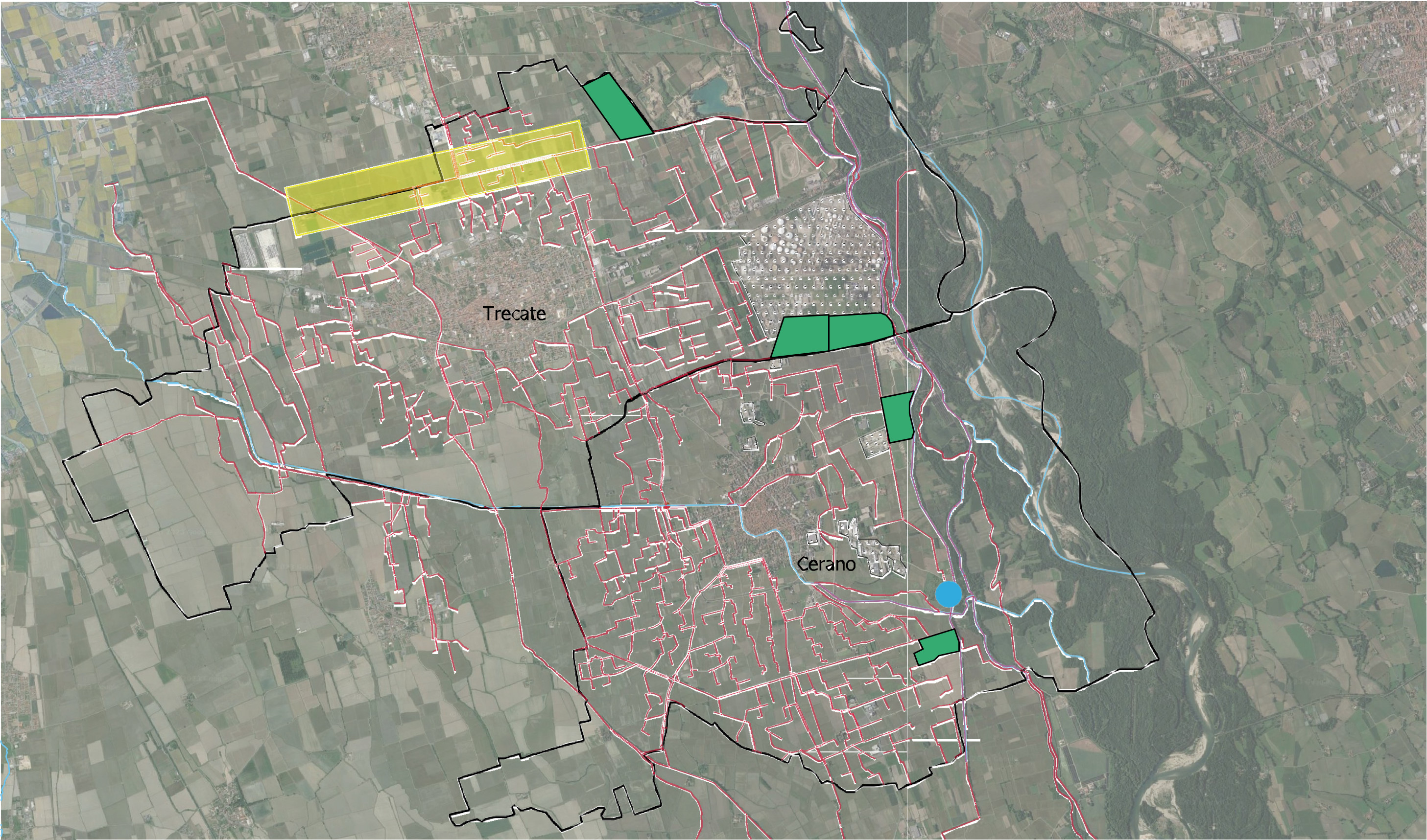 Anche il ciclo idrico, che attualmente si svolge all’interno del locale polo industriale (polo di San Martino), può essere considerato una risorsa: le acque superficiali e sotterranee, prelevate per gli usi industriali, se giudicate compatibili, possono infatti essere recuperate e reimmesse nella rete irrigua. Inoltre, il recupero d’acqua deve passare attraverso la realizzazione di invasi, sfruttando le specificità del territorio come, ad esempio, le cave dismesse: sono state individuate 2 potenziali aree, una a monte del territorio di Trecate ed una a valle del territorio di Cerano, dove realizzare bacini, impiegando tecnologie capaci di garantire la sostenibilità ambientale ed assicurare il recupero di oltre tre milioni di metri cubi d’acqua. Infine, la presenza di un depuratore nel territorio di Cerano offre un’ulteriore opportunità: il recupero di acque reflue depurate da impiegare in agricoltura.