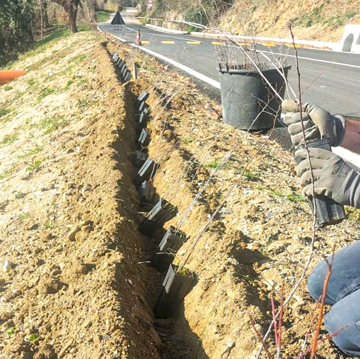 Il Consorzio di bonifica Marche (con sede a Pesaro) è intervenuto, a fronte di una convenzione sottoscritta con il Comune e grazie a fondi del Ministero dell’Interno, con un progetto di messa in sicurezza e che ha interessato un tratto di 1 chilometro circa; le criticità più evidenti venivano dalla mancata regimentazione delle acque superficiali, che provocavano allagamenti e colate di fango sulle carreggiate, con conseguente deterioramento del manto stradale. L’ente consortile ha effettuato un intervento di ripristino ed allargamento della sede stradale, la realizzazione del sistema di raccolta dell’acqua piovana e l’apertura di nuovi canali e fossi di scolo; sono inoltre stati rifatti gli attraversamenti esistenti, e, laddove necessario, realizzate opere di protezione sui versanti sopra la strada.