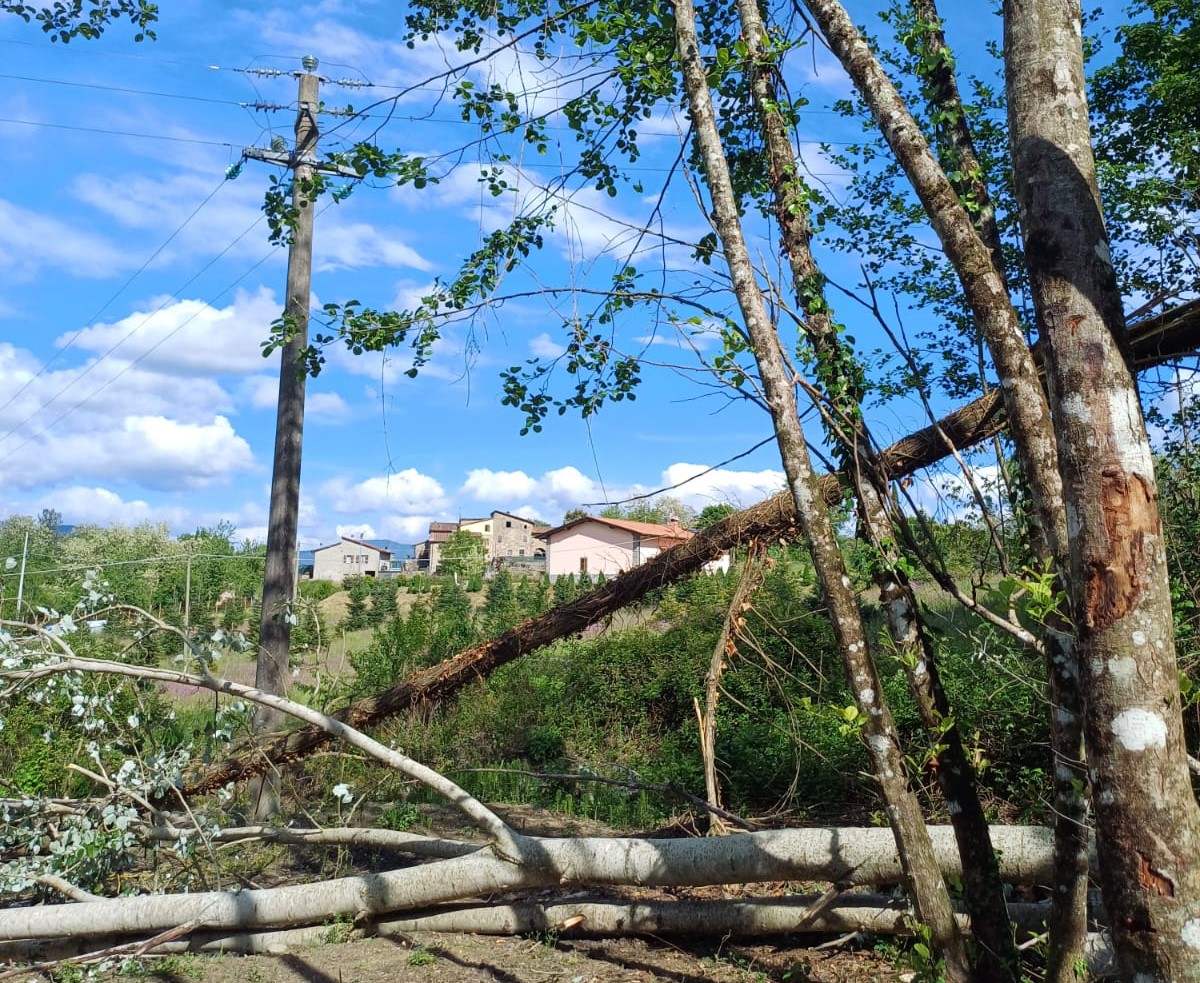 Alberi spezzati, divelti, piegati in due dalla forza di una tromba d’aria, che qualche tempo fa ha investito l’area: siamo sul fosso di Fontemarcoli, in località Torre, nel comune di Castel San Niccolò.