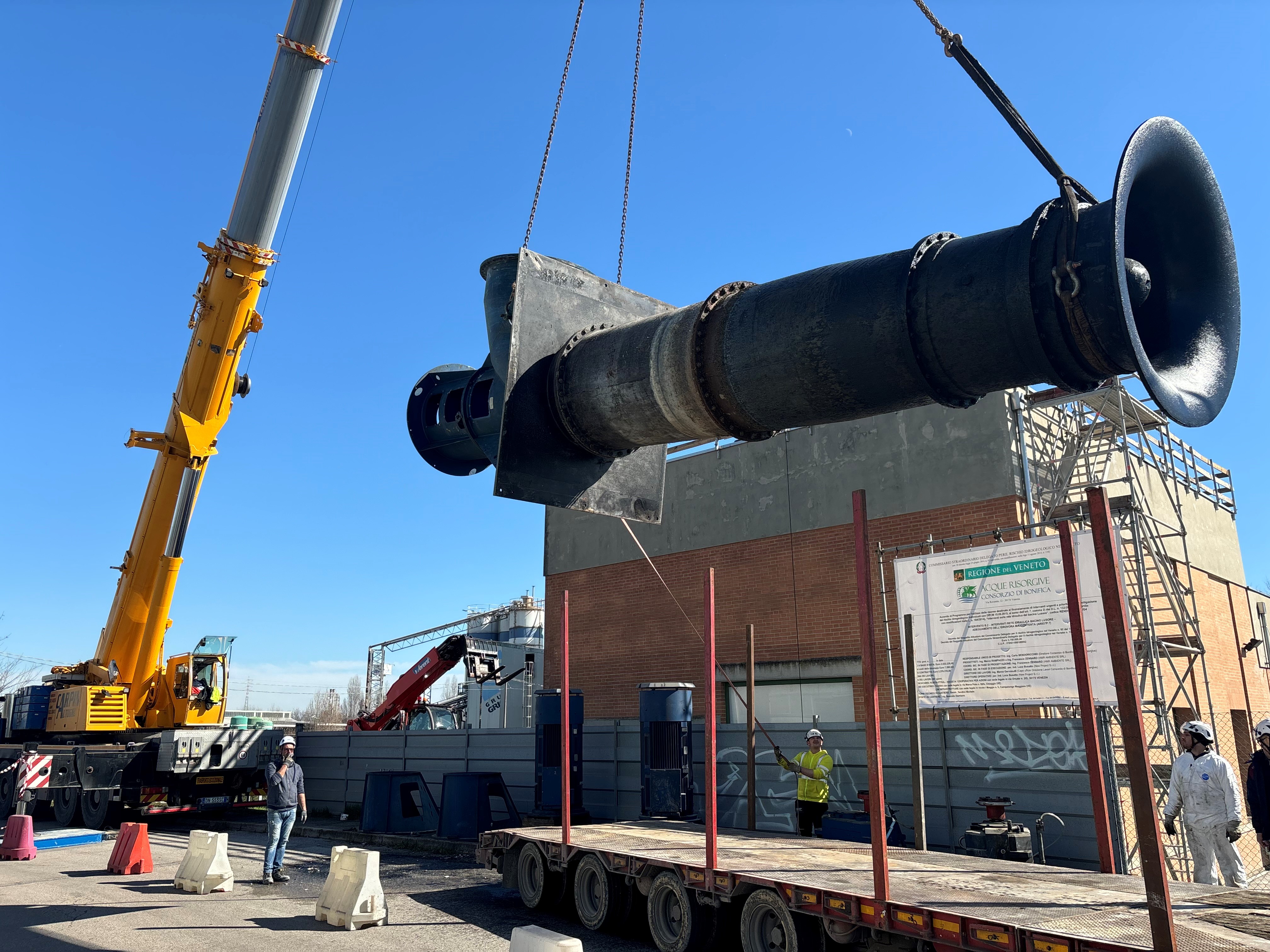 Un complesso intervento di manutenzione straordinaria sta interessando l’idrovora di Malcontenta, uno dei più importanti impianti tra i 32 gestiti dal Consorzio di bonifica Acque Risorgive (con sede a Venezia Mestre). I lavori prevedono il potenziamento dei trasformatori, la sostituzione di 3 elettropompe ad asse verticale ed a pale fisse da 1500 litri al secondo cadauna (in sostituzione delle attuali da l/s 1000), la revisione completa delle elettropompe e degli sgrigliatori, l’espurgo del bacino a monte dell’impianto, la sostituzione dei quadri elettrici e del sistema di telecontrollo, oltre ad altri interventi minori.
