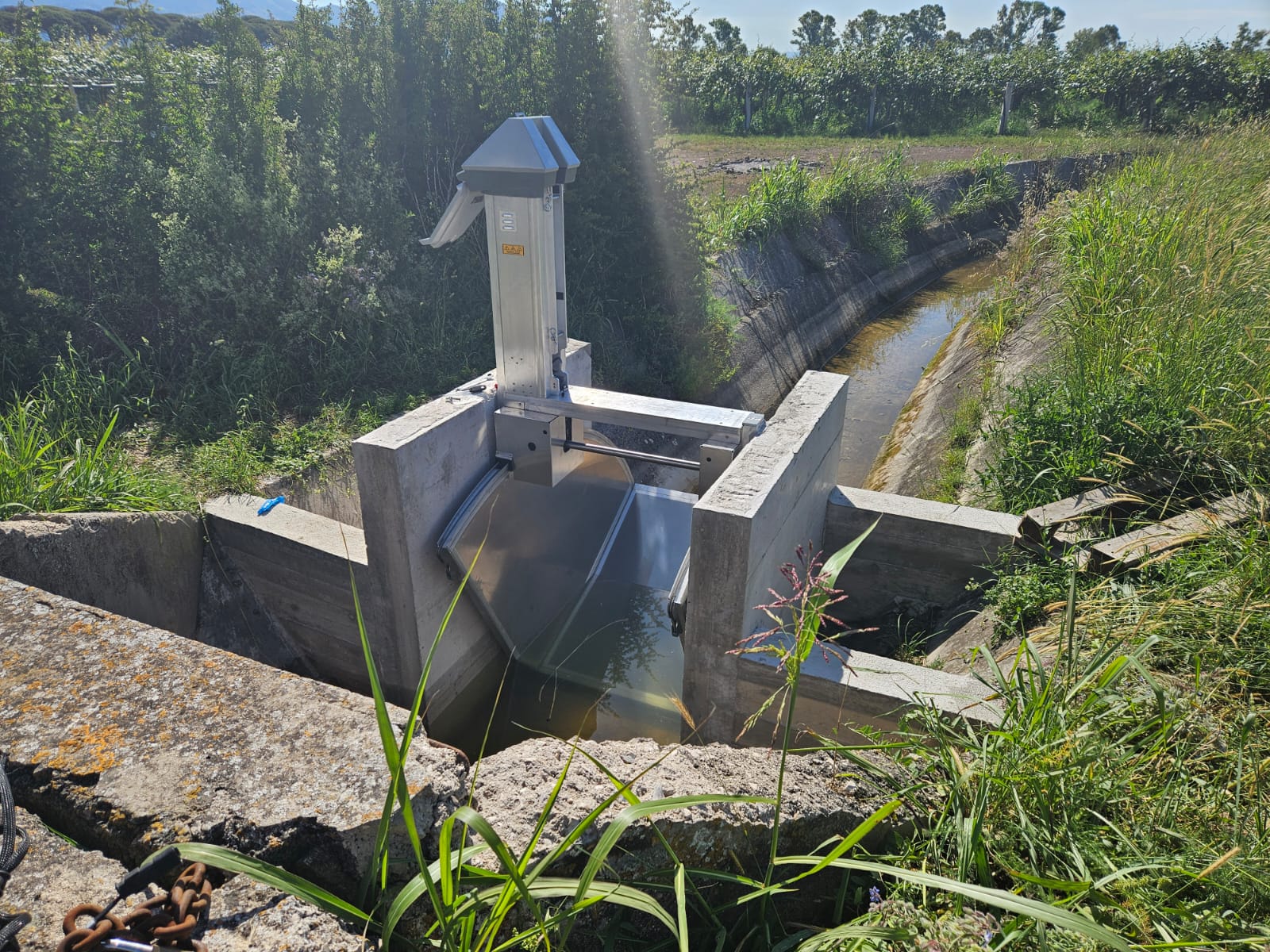 Così, si prospetta una nuova fase per l'irrigazione emergenziale nell'Agro Pontino: a Casal delle Palme, nel comune di Latina, è stata infatti installata la prima paratoia di tipo Flumegate a tecnologia australiana; gestita da un software con Intelligenza Artificiale ed alimentata da pannelli solari, questa tipologia di manufatto è realizzata in alluminio utilizzato nell’ingegneria aerospaziale, che la rende unica al mondo per leggerezza e resistenza. Finanziato con 8 milioni e mezzo concessi dal Ministero Agricoltura Sovranità Alimentare e Foreste, il progetto, ideato dal Consorzio di bonifica Lazio Sud Ovest per fronteggiare la riduzione delle piogge, prevede oltre cento sbarramenti autonomi (10 ulteriori alloggiamenti per paratoie sono già pronti), ma collegati, grazie ad una rete ad uso esclusivo. La finalità è quella di riconvertire l’esistente schema di distribuzione idrica in un sistema a più alta efficienza per quegli utenti, che si approvvigionano con mezzi propri, laddove il territorio non sia servito da impianti irrigui collettivi (irrigazione di soccorso).