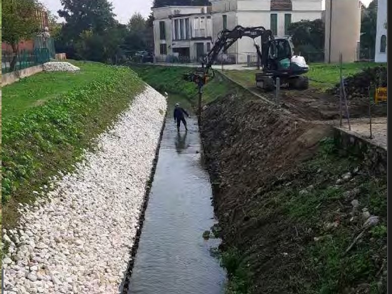 Sono attualmente in corso gli interventi di consolidamento delle sponde, l’ escavo della parte centrale del bacino di laminazione per ridurre le portate di piena, la posa del sasso trachitico sulle sponde del bacino di laminazione per rinforzare le arginature.