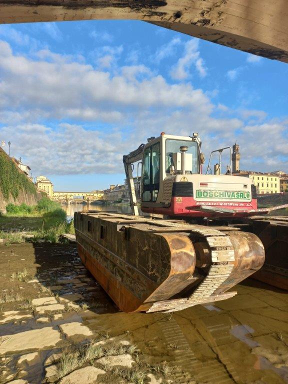 La manutenzione delle sponde del celebre fiume toscano viene effettuata anche dal Consorzio di bonifica 3 Medio Valdarno (con sede nel capoluogo regionale), grazie anche ad un macchinario speciale, in grado di galleggiare per operare sotto i più famosi ponti dell’area Unesco a Firenze: si tratta di uno speciale escavatore anfibio per la manutenzione delle sponde nei tratti, in cui è impossibile operare con i mezzi e la strumentazione tradizionali, riprofilando le sponde dove, piena dopo piena, si accumulano sabbie e detriti da rimettere in corrente, mentre tronchi e rifiuti vengono raccolti e fatti smaltire.