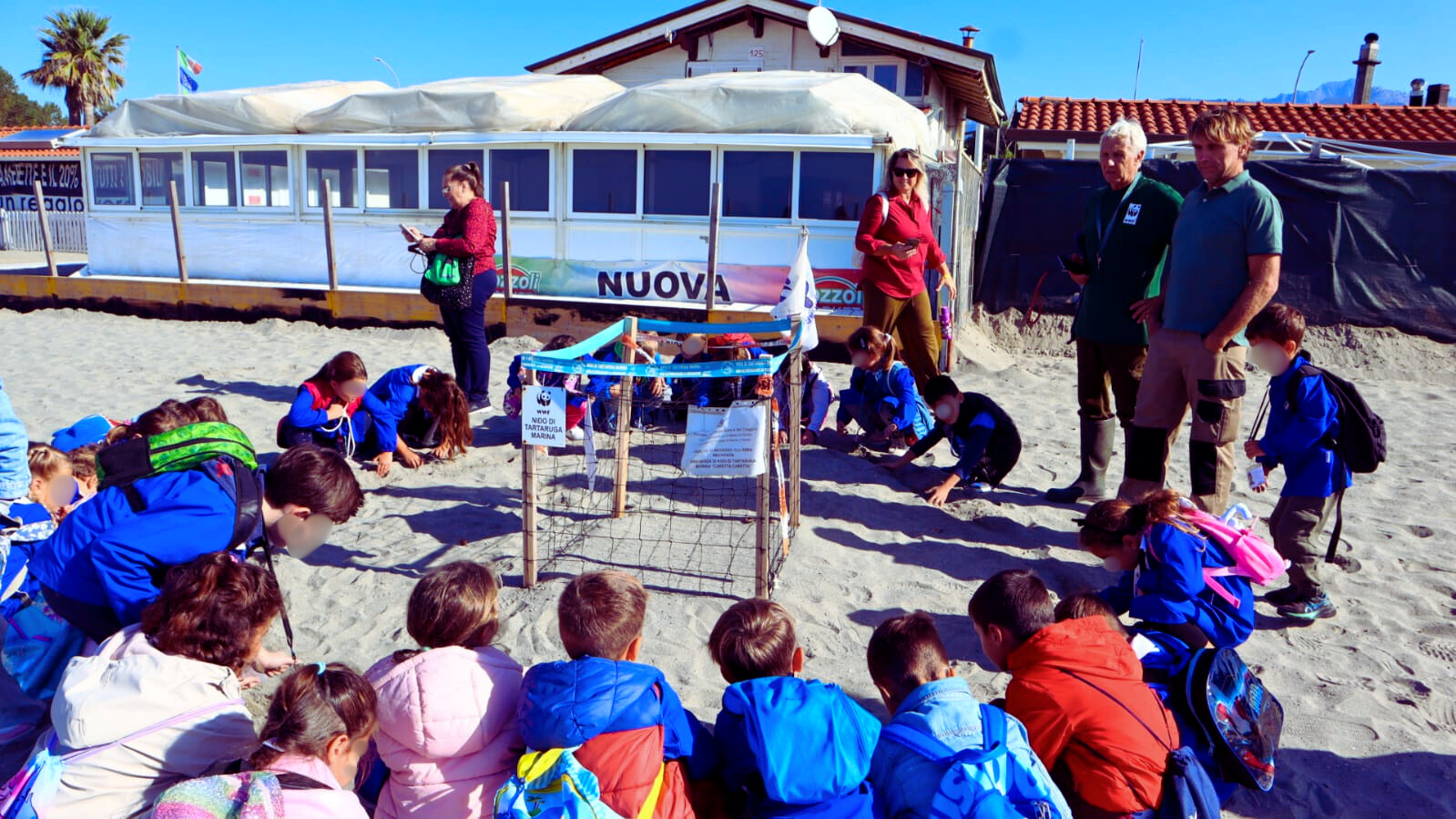 Ogni piccolo gesto conta e farlo capire ai bambini è fondamentale. La visita si è conclusa con un momento ricco di significati: l’osservazione del nido di tartarughe Caretta Caretta sulla spiaggia di fronte al Bagno Emilia, dove si attende la nascita di decine di piccoli esemplari pronti a prendere la via del mare.